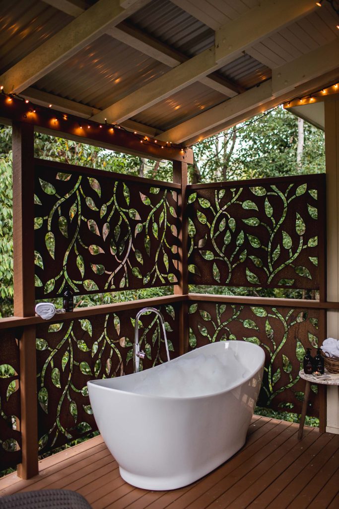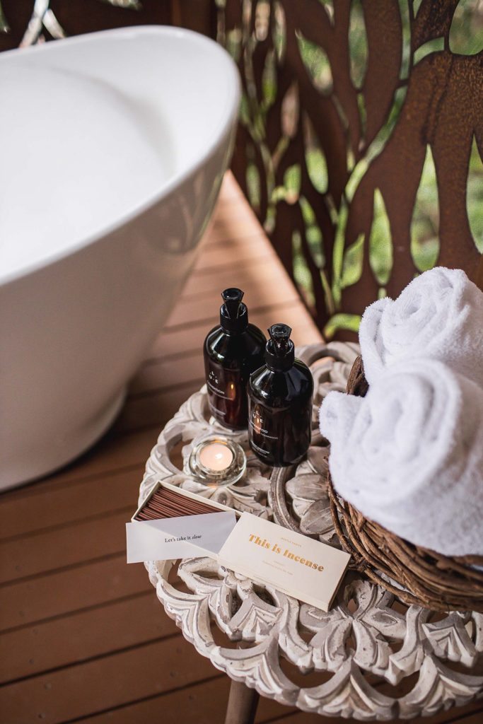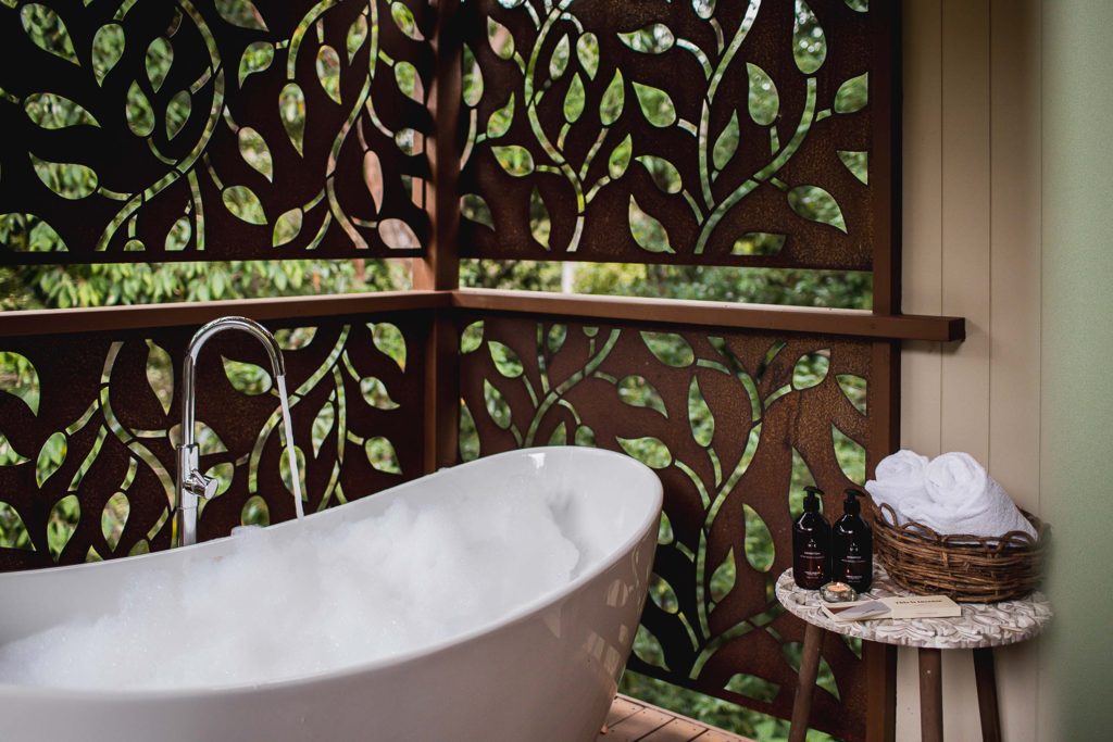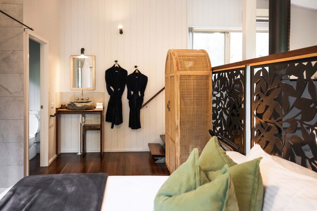 The Villas are a special space for couples to "relax, revive, & recharge". They are open plan cabins perched on a secluded hillside.