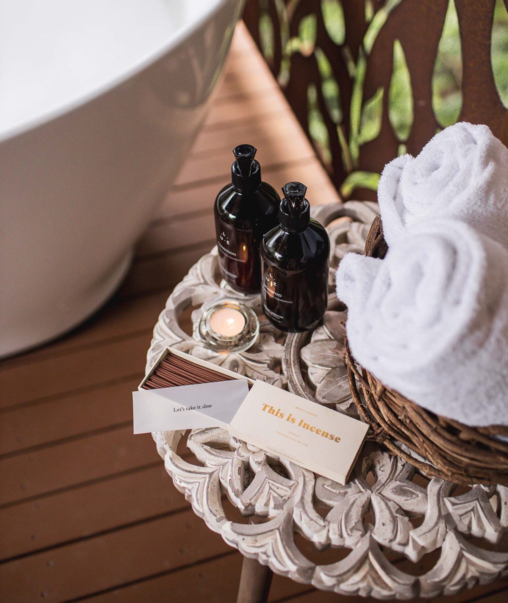 INCLUDES Eco Friendly Bubble Bath, Beauty Water Toner, an Aromatherapy Wooden-Wick Glass Candle, a pack of 'This is Incense' incense sticks with a matching Amber Incense Holder. Plus hire of 2x Fluffy Bath Robes.