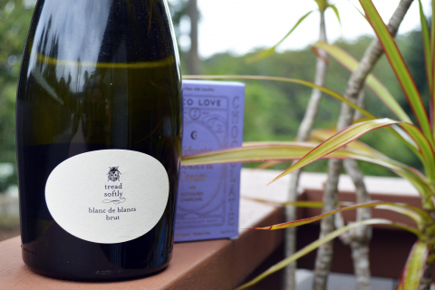 A bottle of Tread Softly Blanc de Blanc Brut delivered to your room.