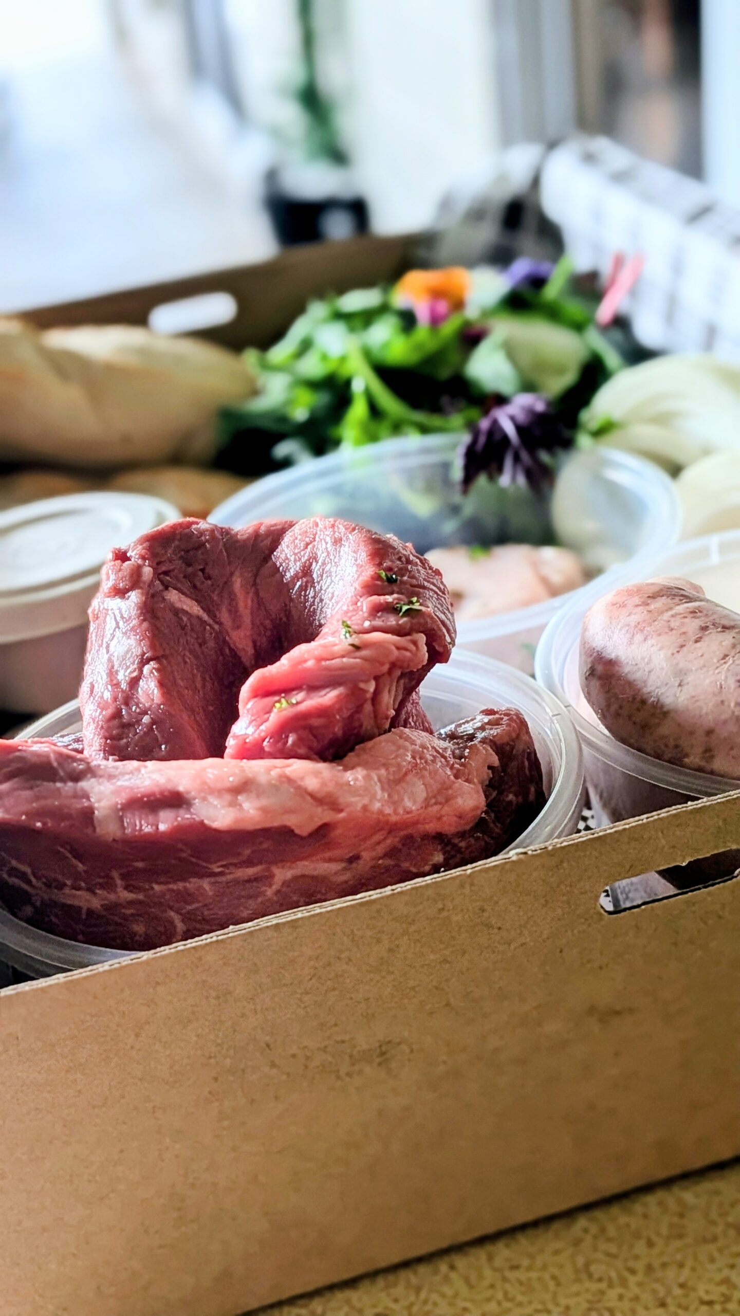 Featuring a selection of premium meats—chicken, steak & gourmet sausages—paired with fresh garden greens, house-made vinaigrette, onion, and rustic sourdough. Complete with olive oil, butter, and classic sauces. Everything is thoughtfully prepared for effortless dining in nature.